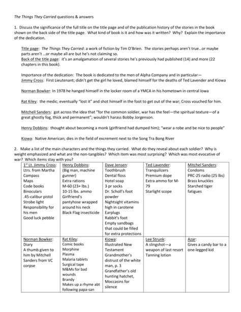 Download Things They Carried Study Questions Answers Epub